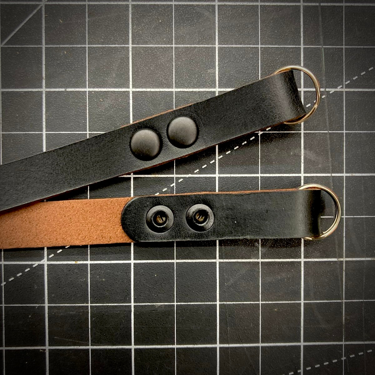 STOP PRESS - we are now supplying this strap with double-riveted camera clip ends. The single rivets on our other straps will easily carry the weight of pretty much any hand-held cameras but we have decided to add another rivet just to reassure all! See last picture for this double-rivet detail.